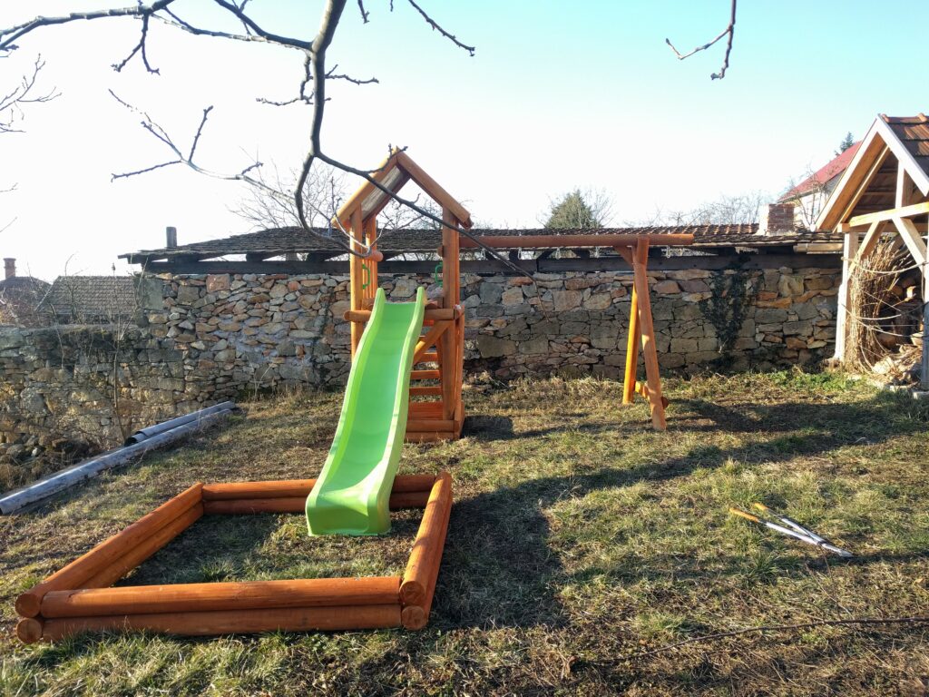 Végülis jól elvagyunk, van kemence és egy új játszó is a kertben.